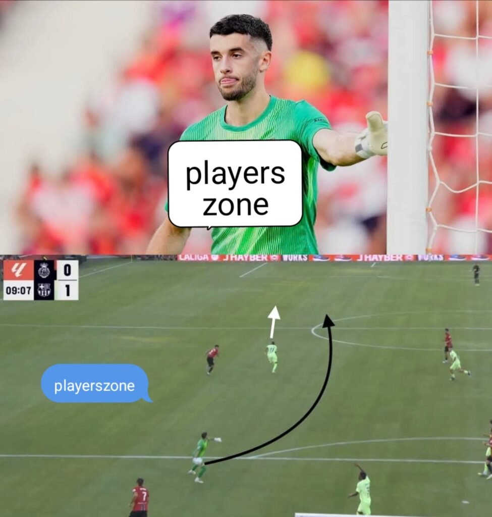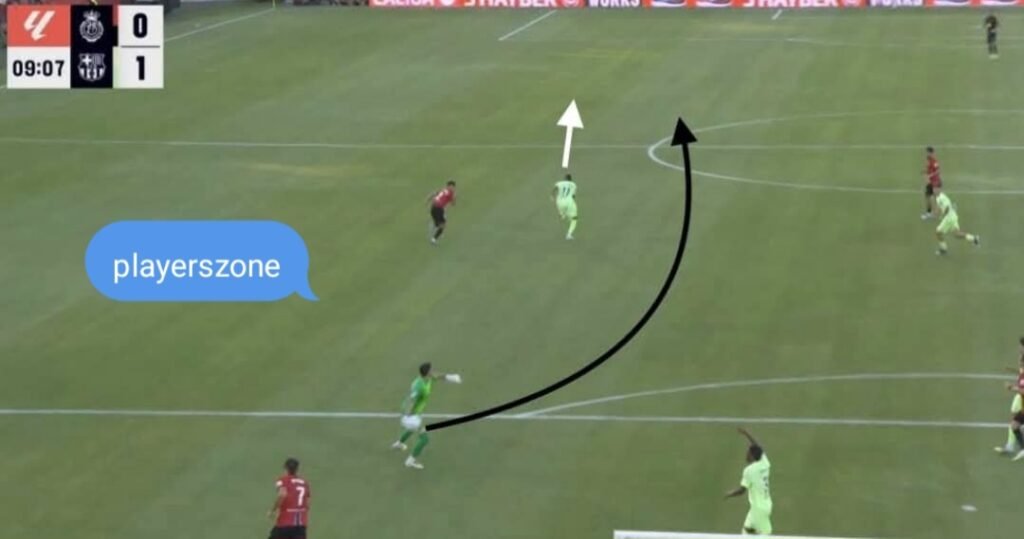 Mallorca match, Juan Garcia grabbed the ball and suddenly threw it to Rafinha, who was running into space, during a moment of disorganization for Mallorca after their attack ended!