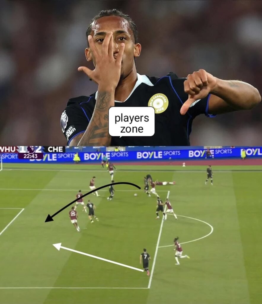 In the first five minutes, he made a wrong decision that led to West Ham scoring the first goal, but the best thing about this kid is that he didn’t lose his composure and continued to play his direct style of facing the defenders!