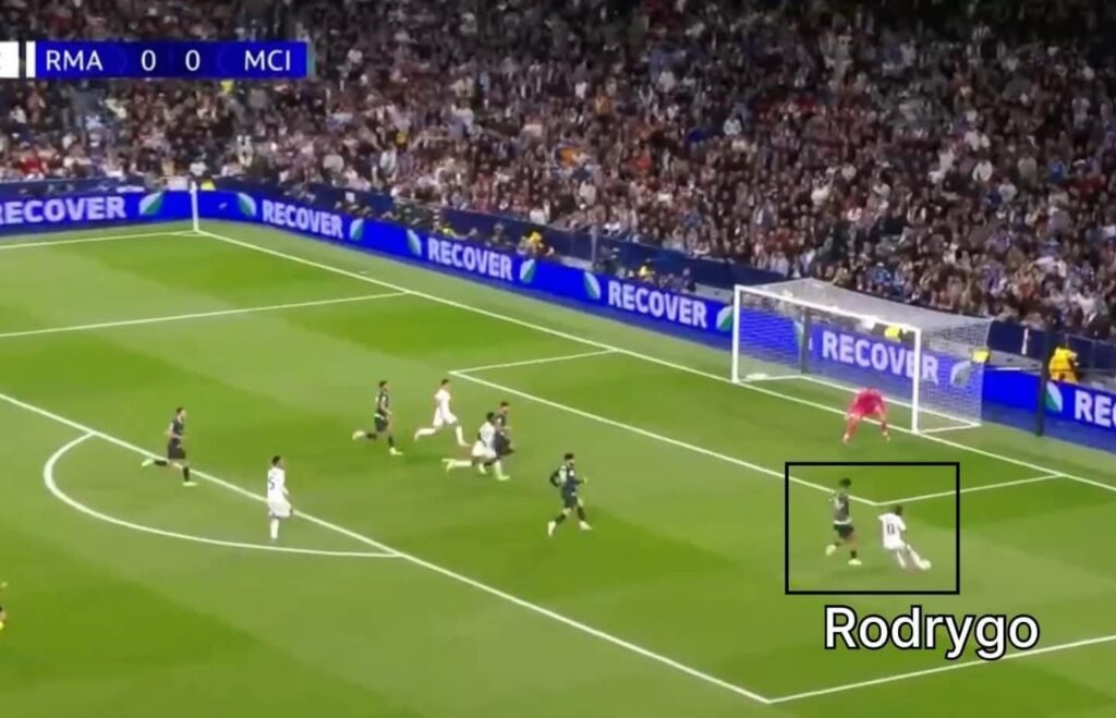 Instead of setting up a one-on-one for Rodrygo, Vinicius passed the ball to a City defender!