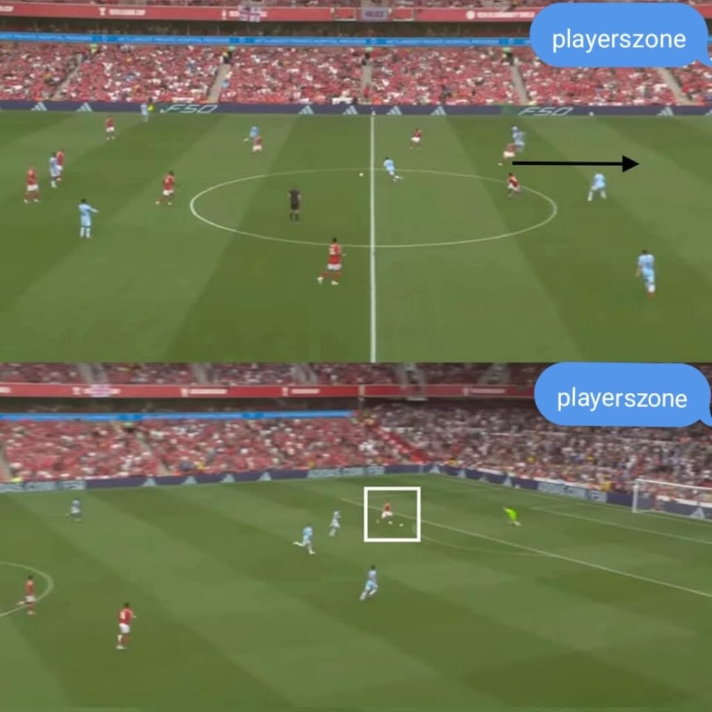 He was the first to reach the space and let his teammate make a quick decision to pass with one touch so he could go one-on-one at the end and score.