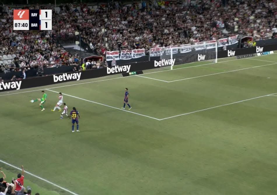 Rayo Vallecano played a great game today, breaking Barcelona’s pressure and catching Barcelona off guard, creating five scoring opportunities!