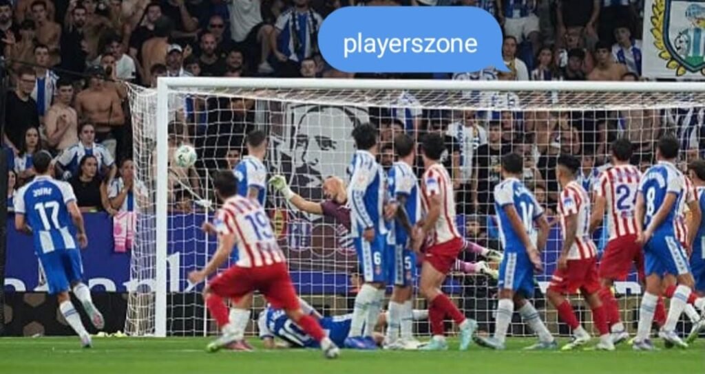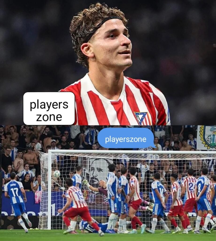 Yesterday, against Espanyol, Alvarez scored the goal you see here from a foul, made a series of complex passes with his teammates, and shot the ball into the crossbar.