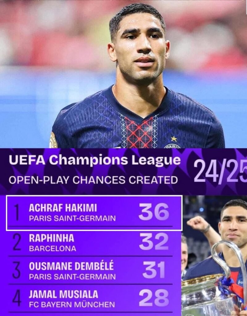 by numbers in the league, Champions League and World Cup: Hakimi is nominated